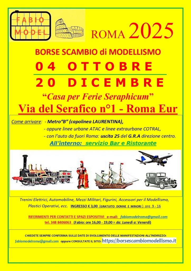 Per informazioni e spazi espositivi: Fabio cell. 348.8406063 (orario 16-19 dal lunedì al venerdì) - mail: fabiomodelroma@gmail.com