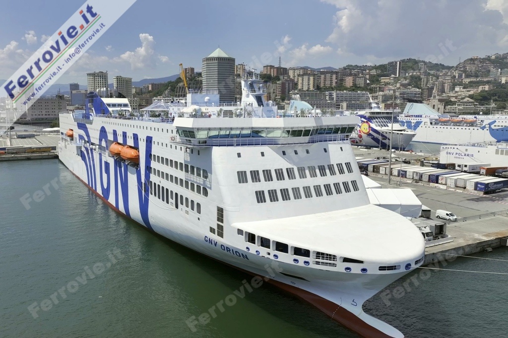 Oggi sotto la Lanterna a Genova è stata battezzata ufficialmente GNV Orion, il 26esimo traghetto di nuova generazione di GNV, compagnia del Gruppo MSC. Ormeggiata accanto alla gemella GNV Polaris, Orion è la seconda nave consegnata alla compagnia parte del piano di modernizzazione e potenziamento dell'intera flotta che vedrà l'arrivo di ulteriori 6 nuovi traghetti di nuova generazione e alimentati a GNL entro il 2030.