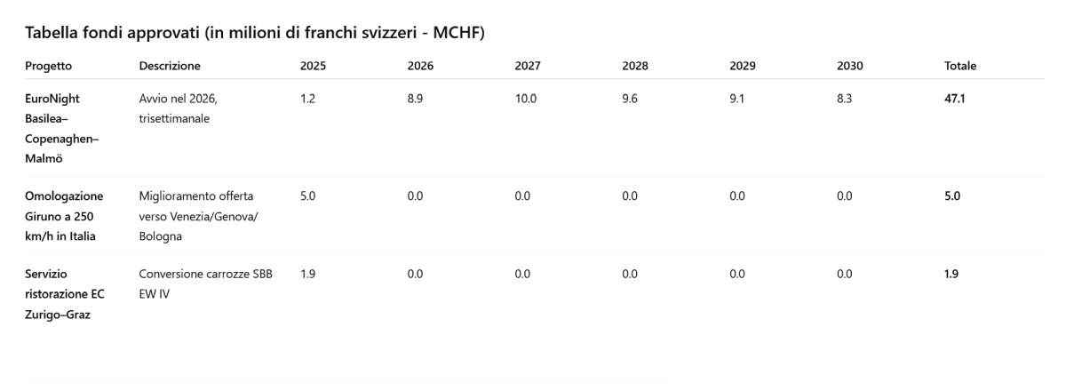 BERNA (Svizzera) - La Confederazione Elvetica ha stanziato nuovi fondi a favore del trasporto ferroviario internazionale di passeggeri. In base alle decisioni del Consiglio Federale e del Parlamento svizzero, nel periodo 2025-2030 verranno messi a disposizione ogni anno 10 milioni di franchi svizzeri per sostenere i collegamenti transfrontalieri, con particolare attenzione ai treni notturni.