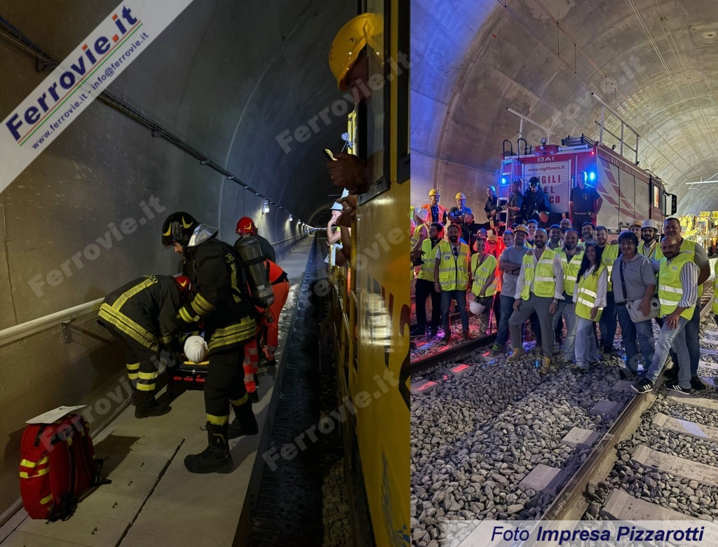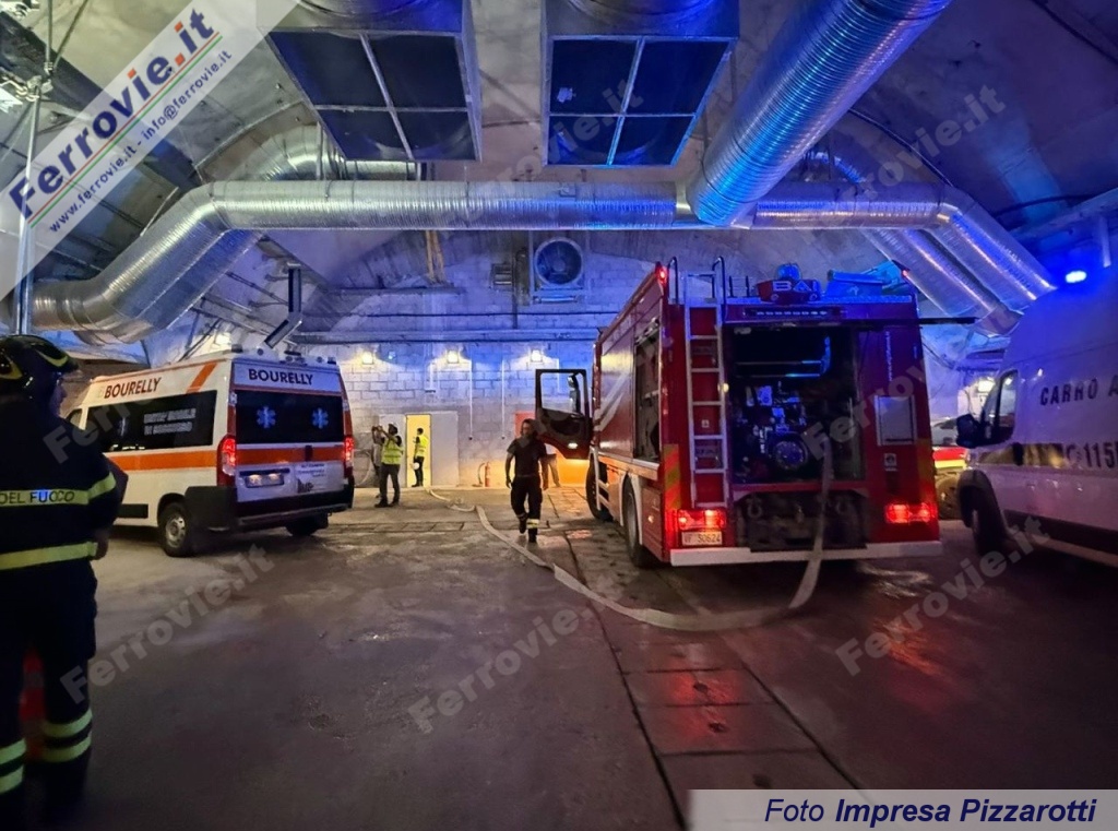 Nel dettaglio, durante la percorrenza della galleria Monte Aglio, verificatosi un principio di incendio su un Mezzo d'Opera e stante l'impossibilità di domare lo stesso e condurre il treno all'esterno della galleria, il personale di bordo ha prontamente allertato il Regolatore della Circolazione, attivatore dell'emergenza, che con l'ausilio del Dirigente Centrale Coordinatore Movimento di RFI ha attivato le procedure previste dal Piano di Emergenza per lo scenario incidentale di riferimento, finalizzato al tempestivo soccorso del personale infortunato a bordo e all'estinzione dell'incendio tramite l'arrivo di apposito APS bimodale, coinvolgendo immediatamente i Vigili del Fuoco, il Soccorso Sanitario 118 e le Polizie Municipali.