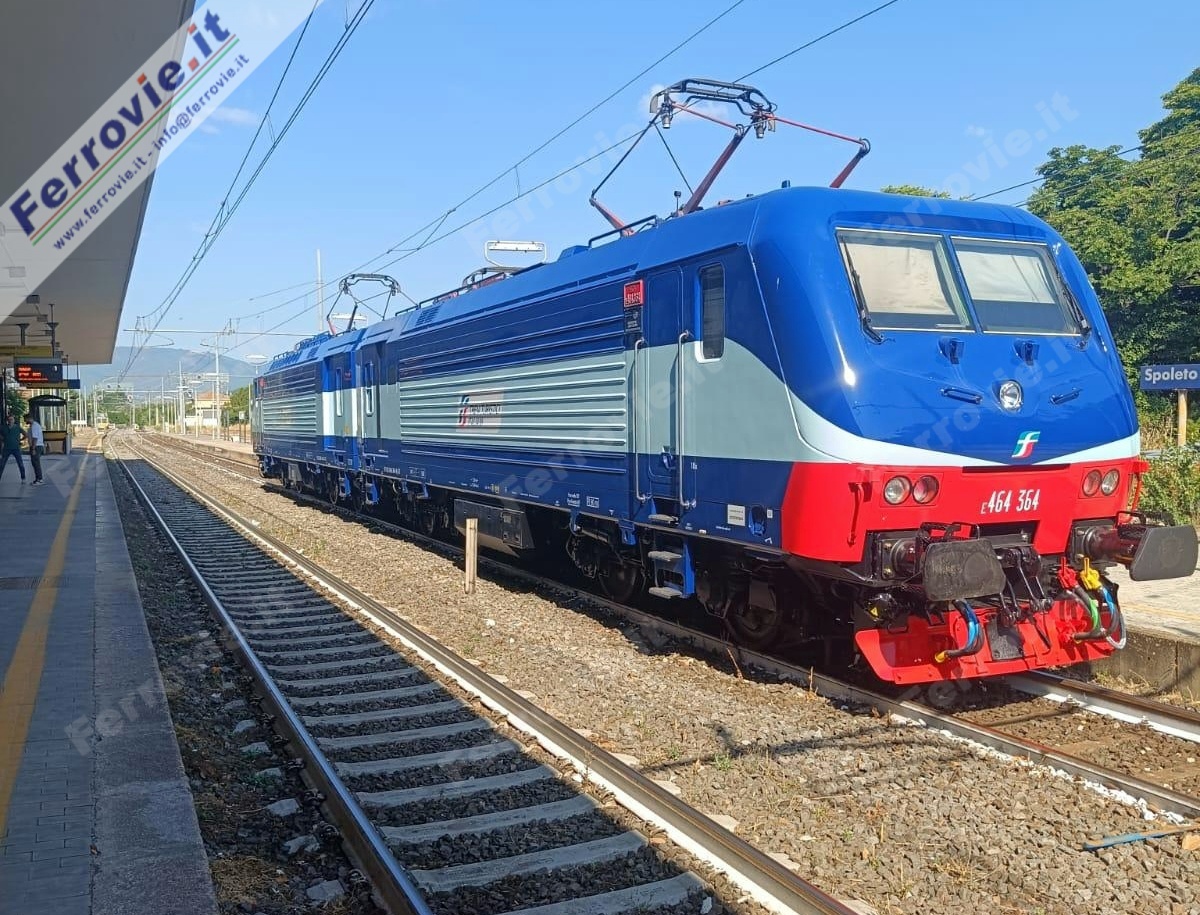 FOLIGNO (Perugia) - Pronte altre due E.464 per Treni Turistici Italiani. Dopo le E.464.368 e 520 consegnate a fine giugno (vedi News ferroviarie del 27/06/2025), giovedì 17 luglio le E.464.364 e 411 hanno lasciato le Officine Trenitalia di Foligno, riconsegnate nei colori di Treni Turistici Italiani.