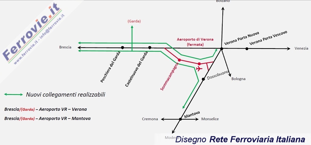 "Con la presentazione dello studio di fattibilità, entriamo ufficialmente nella fase operativa di uno dei progetti infrastrutturali più attesi dal territorio veronese e dal Veneto. L'intervento, dal valore complessivo di 1,385 miliardi di euro, prevede la realizzazione di due nuovi tratti ferroviari connessi alla rete esistente. Il primo consiste in un collegamento a doppio binario tra l'aeroporto Catullo di Verona e le linee Verona-Mantova e Brescia-Verona, per un investimento pari a 800 milioni di euro. Il secondo è una nuova linea a binario semplice che dalla linea Brescia-Verona si dirama verso la sponda orientale del lago di Garda, in direzione Bardolino, con un valore stimato di 585 milioni di euro".