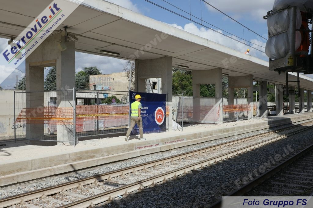 Gli interventi in corso sono finanziati con fondi PNRR e riguardano il miglioramento dell'accessibilità con l'abbattimento delle barriere architettoniche, l'innalzamento del primo marciapiede, ripavimentato e dotato di percorsi tattili, l'ampliamento del secondo marciapiede, ripavimentato e dotato anch'esso di percorsi tattili e due ascensori a servizio dei marciapiedi 1 e 2, con adeguamento delle scale. Previsti inoltre la riqualificazione delle pensiline e il restyling del sottopasso esistente che conduce al secondo fronte, lato Viale Saturno. Qui sarà realizzato un nuovo accesso con pensilina a copertura delle nuove scale e verrà inserito un ascensore. Per l'edificio di stazione è previsto un restyling completo con interventi strutturali di miglioramento sismico e la rifunzionalizzazione degli spazi interni. Previsti interventi anche sul prospetto principale con una nuova pensilina.