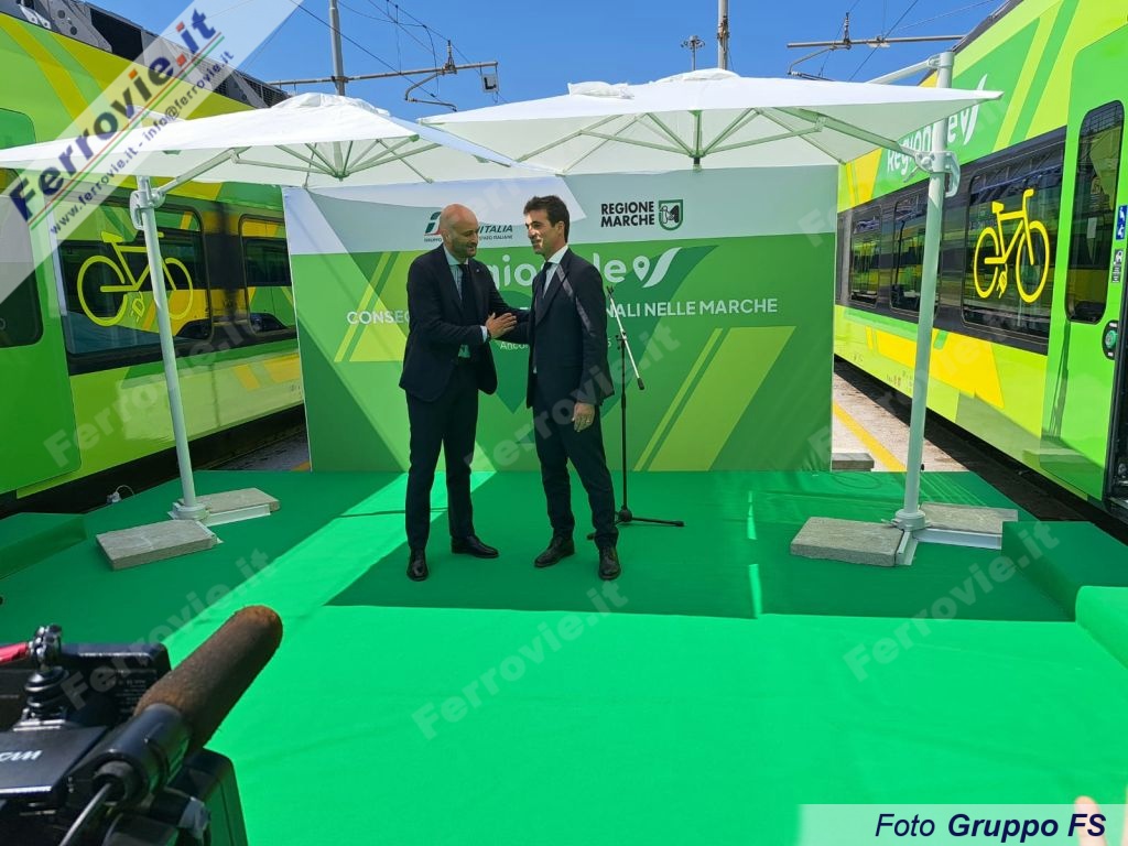 Hanno partecipato alla consegna dei convogli Giovanni Zinni, Vicesindaco del Comune di Ancona, Francesco Acquaroli, Presidente della Regione Marche, Gianpiero Strisciuglio, Amministratore Delegato e Direttore Generale di Trenitalia, Goffredo Brandoni, Assessore a Bilancio, Finanze e Trasporti della Regione Marche, e Francesco Baldelli, Assessore a Infrastrutture, Lavori Pubblici, Viabilità e Governo del Territorio della Regione Marche.