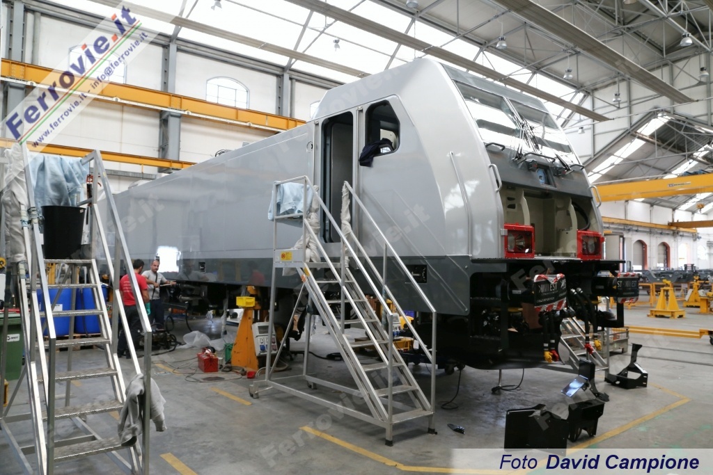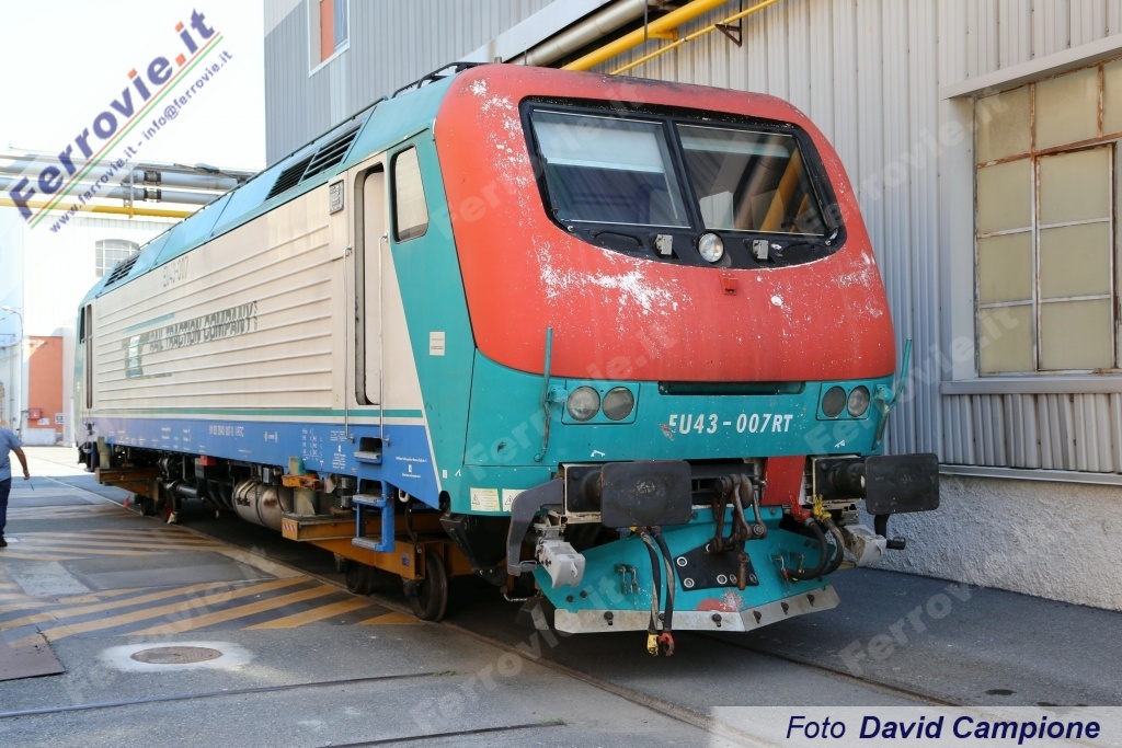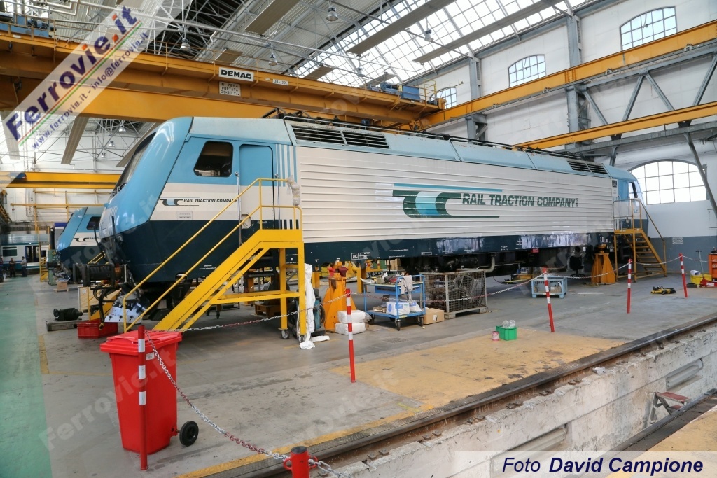 Sono 8 le locomotive EU 43 costruite tra il 1998 ed il 2000 in questo sito, all'epoca appartenente ad ADTranz. Inizialmente destinate alle Ferrovie Polacche (PKP), le EU 43 furono invece vendute a Rail Traction Company per l'effettuazione di treni merci in particolare sull'asse Verona - Brennero. RTC ha di recente siglato un accordo con Bombardier per la revisione delle 8 unità, programmata dopo circa 2,4 milioni di chilometri di percorrenza e denominata R2. Al momento della visita sono 3 le unità in lavorazione: la EU 43.005, la 006 riconsegnata all'esercizio nei nuovi colori lo scorso dicembre (vedi News ferroviarie del 23/12/2015) ed infine la EU 43.007 soprannominata "Testarossa" per via delle testate rosse, sviata il 7 febbraio 2015 mentre era in transito a Fortezza alla testa di un treno merci. In sede di revisione le EU 43 ricevono tra l'altro l'attuale livrea zebrata di Rail Traction Company e relativo nuovo logotipo.