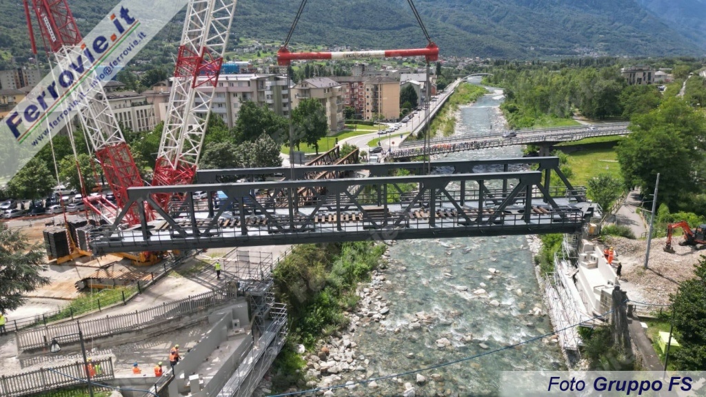 Completato il varo della nuova travata metallica sul torrente Mallero, a Sondrio, lungo la linea Colico - Sondrio - Tirano.
