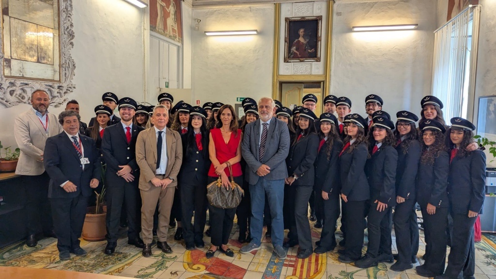 Cresce ancora l'organico del Regionale di Trenitalia in Sicilia. Cerimonia di giuramento a Palazzo Burgio di Villafiorita, sede dell'Assessorato ai Servizi Demografici ed Elettorali del Comune di Palermo, per 36 nuovi capitreno e quattro nuovi operatori di assistenza e vendita. Presenti Dario Falzone, Assessore al Personale del Comune di Palermo, la Professoressa Clara Celauro, Esperta del Comune di Palermo per i Trasporti e la Mobilità Sostenibile, e il Direttore Regionale Sicilia di Trenitalia, Pasquale Cammisa.