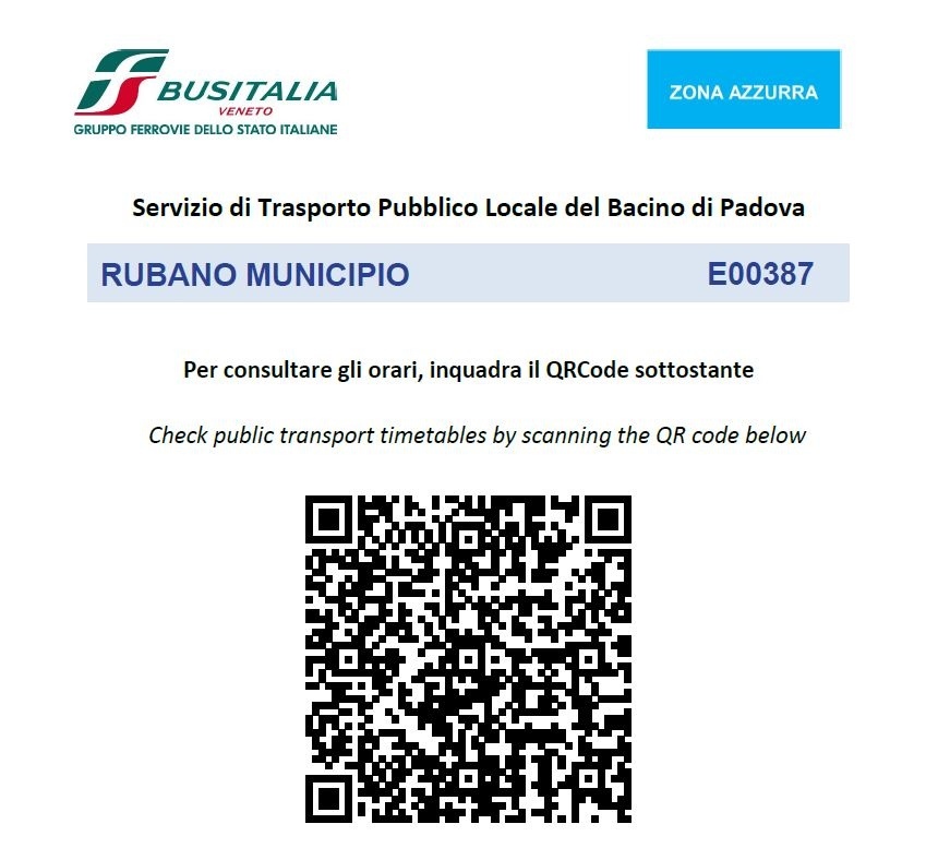 Un QR Code a portata di smartphone consentirà di visualizzare facilmente gli orari di passaggio delle linee in transito del servizio Busitalia Veneto, sia programmate che real time.