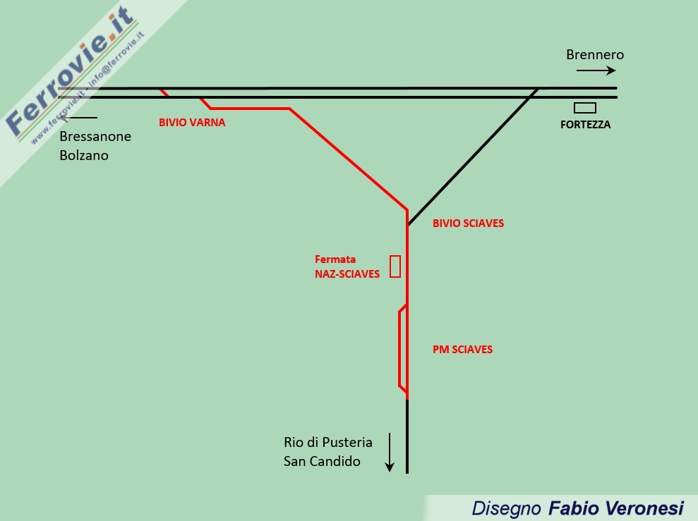 È previsto l'adeguamento della linea da Fortezza per ricollegarla plano-altimetricamente alla variante della Val di Riga prima della nuova fermata di Naz-Sciaves, mantenendo la stessa velocità di tracciato pari a 75 km/h, nonostante la presenza del deviatoio a 60 km/h.