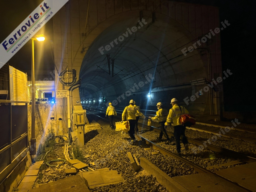 È questo lo scenario dell'esercitazione di protezione civile che si è svolta la notte scorsa sulla tratta ferroviaria Porto di Vasto - Vasto San Salvo, sulla linea Adriatica Bologna - Bari, organizzata da Rete Ferroviaria Italiana (Gruppo FS) con il coordinamento della Prefettura di Chieti. Hanno partecipato all'esercitazione il Comando Provinciale Vigili del Fuoco di Chieti, il Compartimento Polizia Ferroviaria per le Marche, l'Umbria e l'Abruzzo, la Questura di Chieti, il Comando Provinciale Carabinieri di Chieti, il Comando Provinciale Guardia di Finanza di Chieti, il Comando Sezione Polizia Stradale di Chieti, il Servizio 118 ASL02 di Lanciano-Vasto-Chieti, il NUE 112 Regione Abruzzo, la Protezione Civile Regione Abruzzo, il Comune di Vasto, la Direzione Regionale Abruzzo di Trenitalia e FS Security del Gruppo FS.