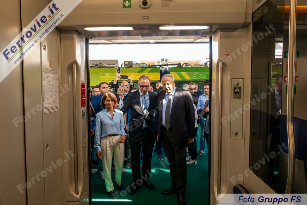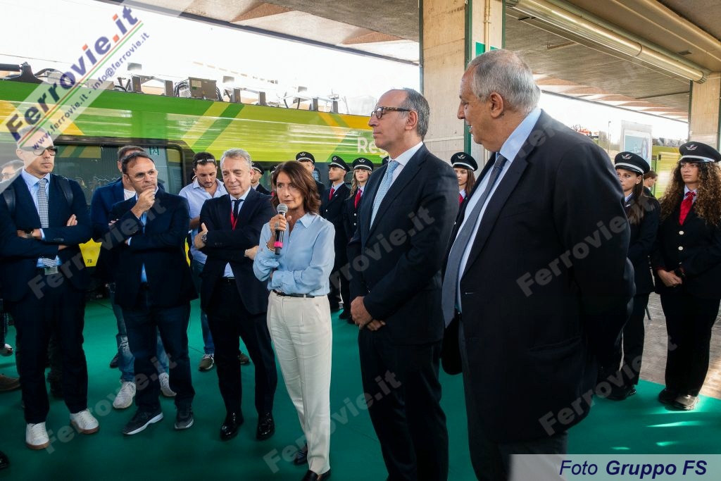 A presentare i due treni elettrici monopiano, nella stazione di Palermo Centrale, Maria Annunziata Giaconia, Direttore Operations Regionale di Trenitalia, Alessandro Aricò, Assessore alle Infrastrutture e alla Mobilità della Regione Siciliana, e Roberto Lagalla, Sindaco di Palermo.