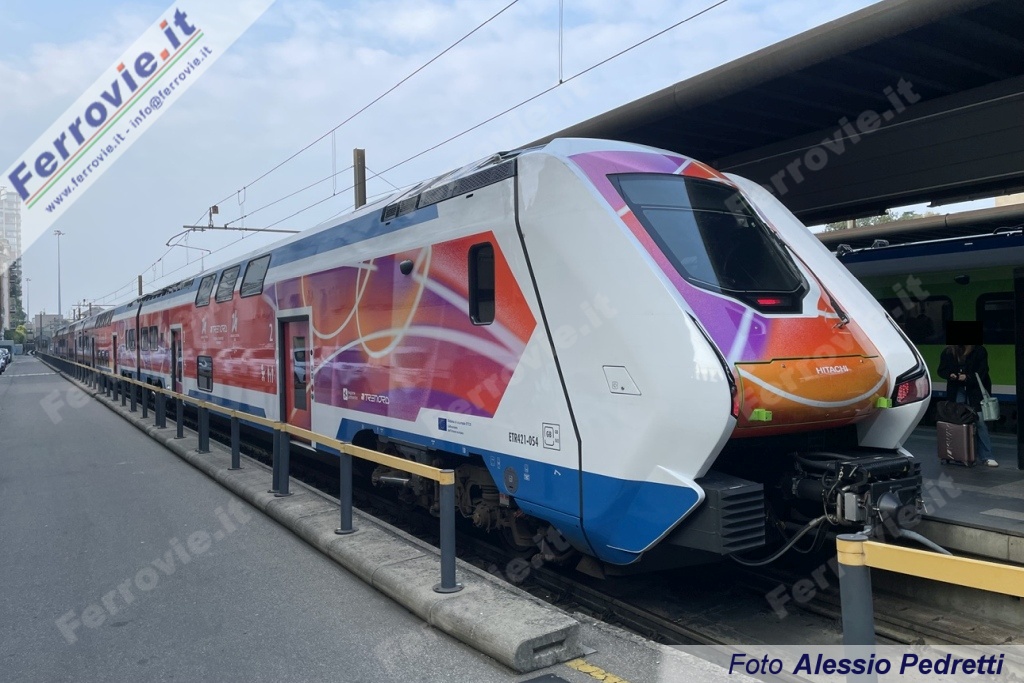 Il secondo, l'ETR.421-054, è stato fotografato nel tardo pomeriggio a Milano Cadorna, appena giunto da Malpensa con il treno 356 e pronto per ripartire alle 16.57 come treno 361 per Malpensa Aeroporto T2.