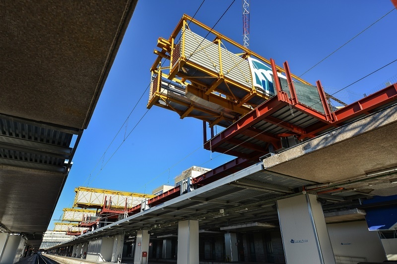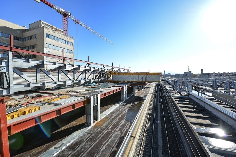 Per poter arrivare all'importante traguardo della prima spinta - che rappresenta una vera sfida ingegneristica - si sono dovuti realizzare pilastri di sostegno ognuno dei quali pesa oltre 7 tonnellate , ancorati a terra con fondazioni profonde 20 metri, limitando al minimo le interferenze sulla circolazione ferroviaria in una stazione dove ogni giorno arrivano e partono oltre 800 treni.
