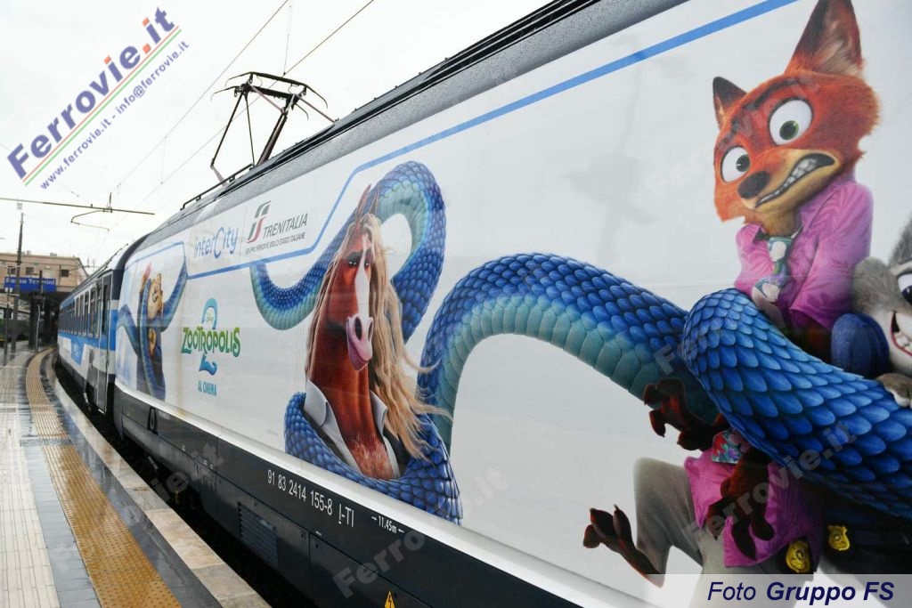 Un treno Intercity di Trenitalia decorato con una speciale grafica dedicata a "Zootropolis 2", il nuovo film Disney al cinema dal 26 novembre, ha fatto il suo ingresso alla stazione di Roma Termini. L'evento ha visto la partecipazione delle voci italiane dei protagonisti: Michela Giraud (Nibbles), Max Angioni (Gary), Matteo Martari (Mayor Winddancer), Ilaria Latini (Hopps) e Alessandro Quarta (Nick), oltre a Stefano Cuzzilla, Presidente di Trenitalia, Mario Alovisi, Direttore Marketing & Revenue Management, Francesca Serra, Direttore Operations Intercity, e Cecilia Cantarano, Ambassador Intercity.