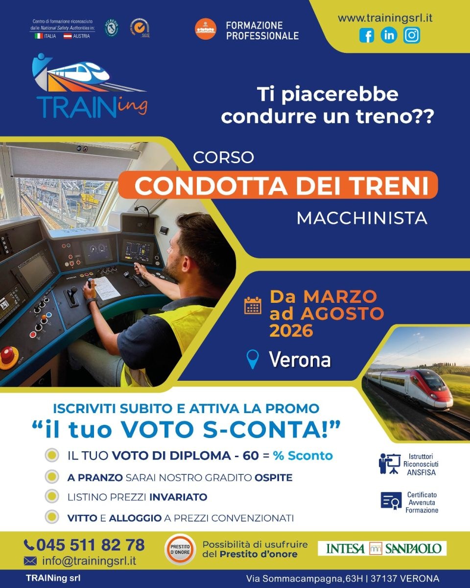 In promozione il corso TRAINing per Macchinista a Verona nel 2026