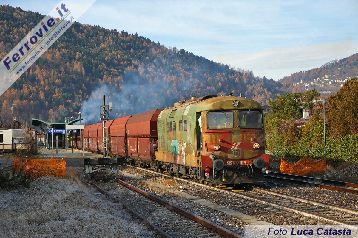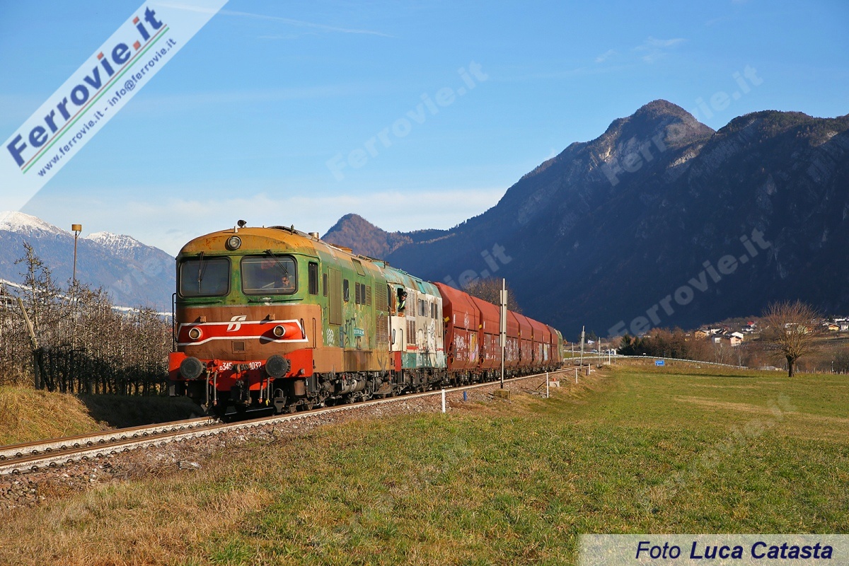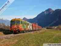 PERGINE VALSUGANA (Trento) - In seguito agli interventi realizzati nei mesi scorsi sulla linea della Valsugana, funzionali all'elettrificazione della tratta Trento - Borgo Valsugana Est, un convoglio composto da 7 carri Falns carichi e tre locomotive D.345 ha circolato tra le stazioni di Roncegno e Pergine Valsugana nella prima settimana di dicembre.