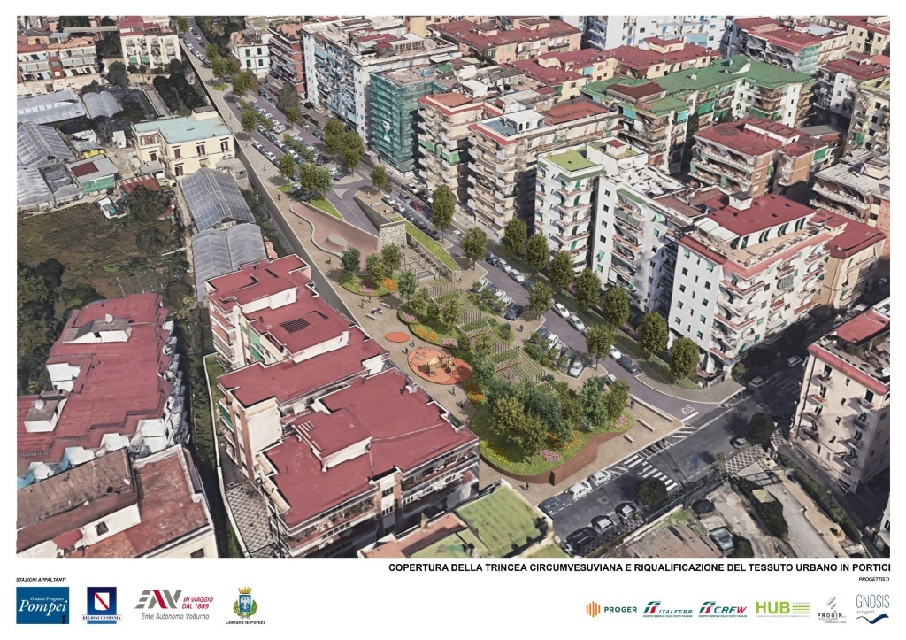 Il progetto prevede la copertura di un tratto in trincea della linea ferroviaria Circumvesuviana ricadente nel Comune di Portici, la sistemazione della stessa con un parco urbano attrezzato e la realizzazione un parcheggio interrato, in affiancamento alla copertura, nei pressi dell'incrocio di via Aldo Moro con via Libertà.