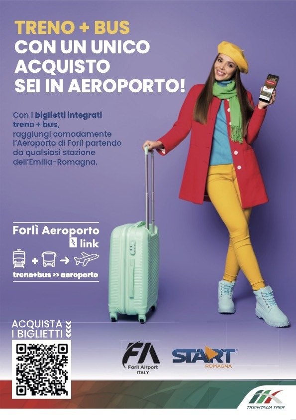 Diventa più semplice e sostenibile raggiungere l'Aeroporto "Luigi Ridolfi" di Forlì grazie a un progetto di trasporto pubblico integrato, frutto di un accordo fra Trenitalia Tper e Start Romagna. Nasce "Forlì Aeroporto Link", il nuovo servizio che consente di acquistare in un'unica soluzione di viaggio il biglietto del treno e quello del bus per compiere comodamente il tragitto di collegamento con il "Luigi Ridolfi" di Forlì.