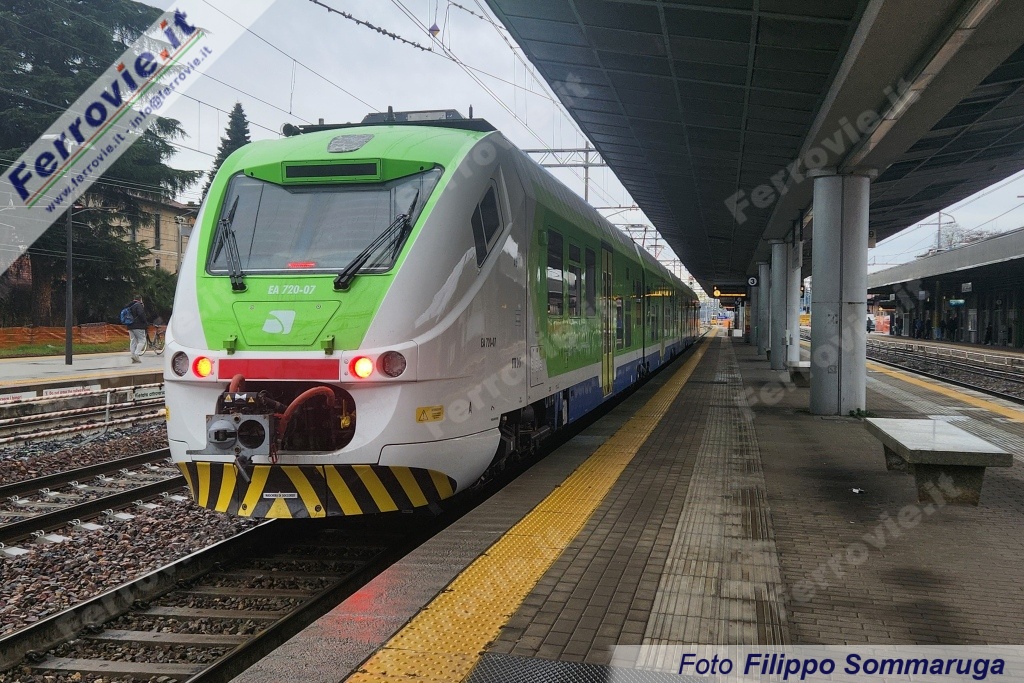 GALLARATE (Varese) - In vista dell'apertura della linea Milano - Malpensa T2, prevista per il 23 gennaio, l'ETR.245-007 nella nuova livrea è stato utilizzato tra Gallarate e Ferno-Lonate Pozzolo per effettuare le corse prova della linea.