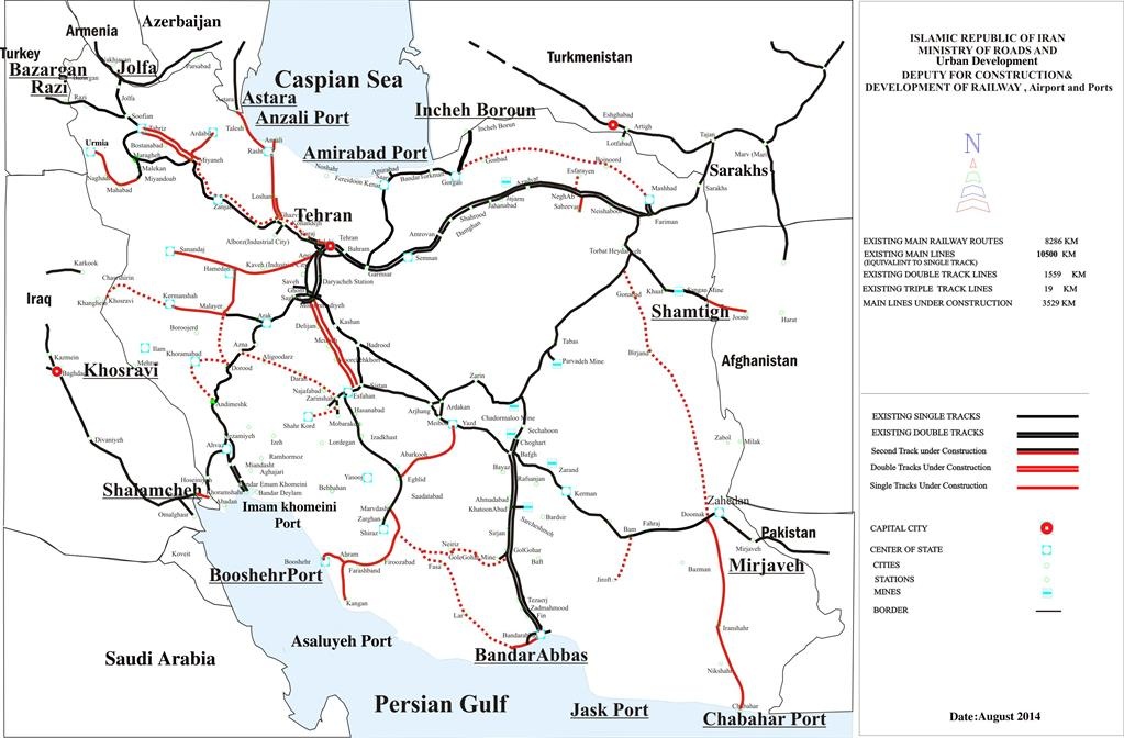 L'infrastruttura ferroviaria dell'Iran si estende per circa 10.000 km e prevede un ampliamento del network fino a 25.000 km nel 2025, di cui 7.500 km di linee già in costruzione.