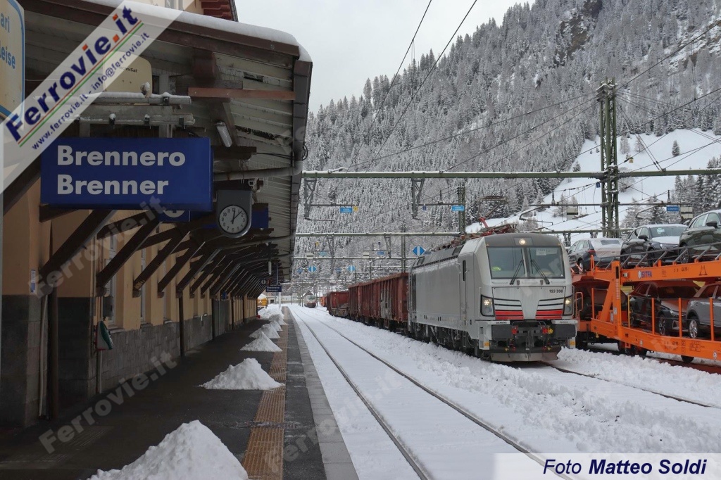 Giunte al confine, le due macchine sono state separate, per far ritorno verso sud con due distinti convogli: la E 193.998 con il merci di rottami 44121 per Brescia e la 999 con un trasporto di auto nuove per Verona Porta Vescovo con numero 48861.