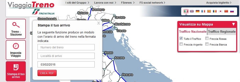 Si chiama stampa il tuo arrivo: è la nuova funzione disponibile sul sito viaggiatreno.it. Un nuovo strumento che permette al viaggiatore di conoscere l'esatto orario di arrivo del proprio treno.