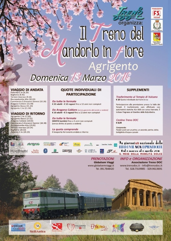 Appuntamento con il Treno del Mandorlo In Fiore in programma Domenica 13 Marzo 2016, da Palermo alla volta di Agrigento Centrale per la 71° Sagra del Mandorlo in Fiore.