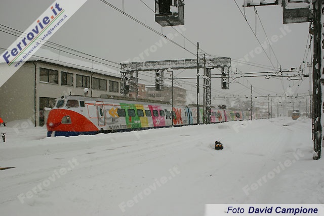 Problemi alla circolazione ferroviaria si sono avuti al confine umbro-marchigiano, tra Foligno e Jesi sulla Orte - Ancona. Qui il manto bianco, vicino agli 80 cm a Gualdo Tadino e Fossato di Vico, ed ai 60 cm a Fabriano, ha creato rallentamenti alla circolazione dei treni. Impossibili gli incroci per i deviatoi bloccati dalla neve, così come i passaggi a livello.