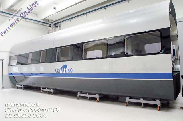 Il mock-up del Pendolino per Cisalpino è stato presentato a Moncalieri lo scorso 22 giugno, congiuntamente al modello per Trenitalia (vedi News ferroviarie del 23/06/2005).
