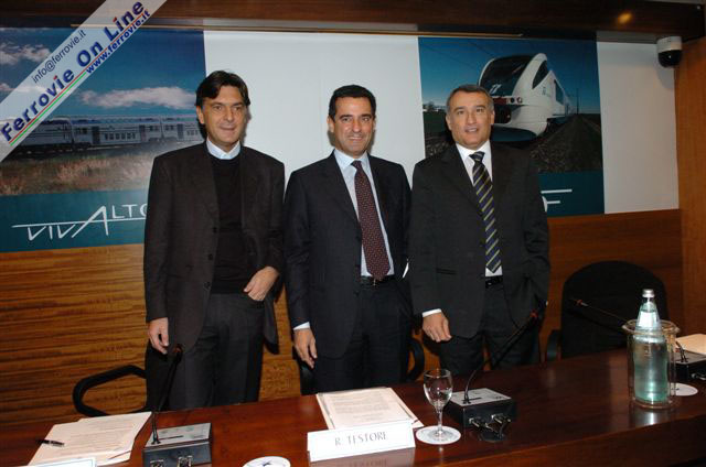 ROMA - Presentazione in pompa magna questa mattina per Vivalto e Minuetto, i nuovi treni per il trasporto regionale acquistati dalla Provincia di Roma e dati in comodato d'uso a Trenitalia. Alla conferenza stampa hanno partecipato l'amministratore delegato di Trenitalia, Roberto Testore, il presidente della Provincia di Roma, Enrico Gasbarra, il presidente della Regione Lazio, Piero Marrazzo, l'assessore ai trasporti della Regione, Fabio Ciani, l'assessore alla Mobilita della Provincia di Roma, Michele Civita ed il direttore generale operativo di Trenitalia, Massimo Ghenzer.