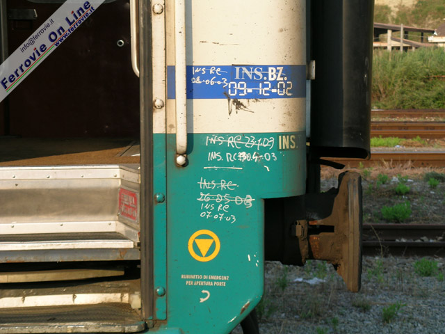 ROMA - Più ordine sulle testate delle vetture. Sulle carrozze passeggeri è in corso l'applicazione di etichette adesive con l'Impianto di Formazione Treno a cui è assegnata la vettura ed alcune caselle bianche, in cui va apposta a pennarello l'ultima data di applicazione dell'insetticida all'interno della vettura.