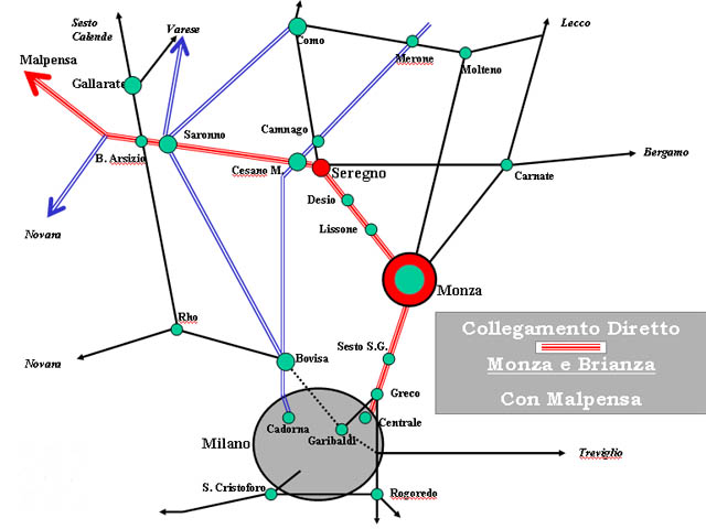 MONZA - E' aperta ormai da molto tempo la discussione per la realizzazione di un collegamento ferroviario diretto tra Milano Centrale e l'Aeroporto di Malpensa, oggi servito solamente dal "Malpensa Express" che percorre la rete FNME da Milano Cadorna, stazione raggiungibile per chi arriva in treno, solamente con i mezzi pubblici o in taxi. In questo contesto la nuova provincia di Monza e Brianza si batte affinché si scelga di creare un nuovo servizio che serva anche il proprio bacino d'utenza, che conta ben ottocentomila persone. I treni da Milano per Malpensa dovrebbero passare per Monza e da qui raggiungere Saronno e l'attuale linea FNME per l'Aeroporto, passando da Seregno. Questa possibilità pone ovviamente l'attenzione su un'altra linea FNME, la Seregno - Saronno, che oggi versa in condizioni precarie: dotata di un solo binario e non elettrificata è utilizzata unicamente per un solo servizio merci nei giorni feriali.