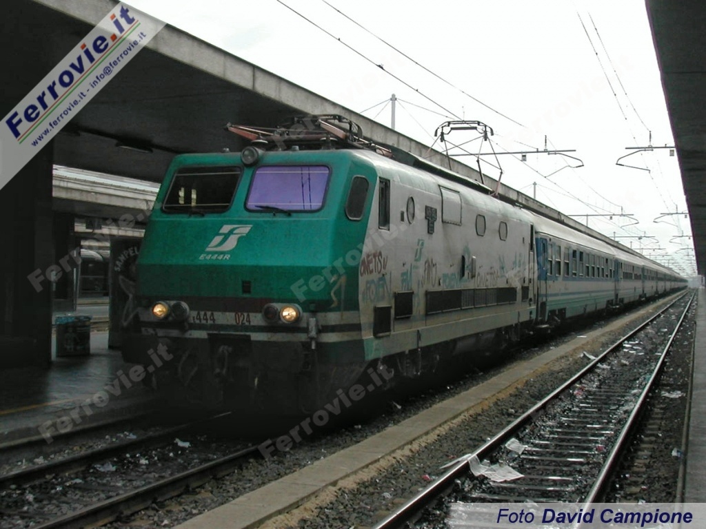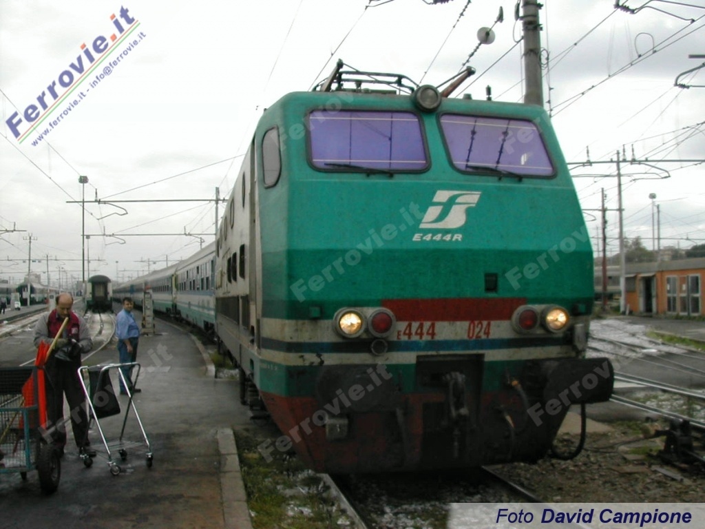 Sono le 10 del mattino di una giornata di ottobre dell'anno scorso, quando lEspresso 878 giunge a Roma Termini da Siracusa/ Palermo con la E.444R.024 e ben 16 carrozze, tutte di tipo X di I e II classe. Il nostro macchinista è già al binario per dare il cambio ai colleghi in arrivo da Napoli, che possono finalmente concedersi un caffè rifocillante dopo ore di macchina, lasciandola abilitata in carico al macchinista dei traghetti!