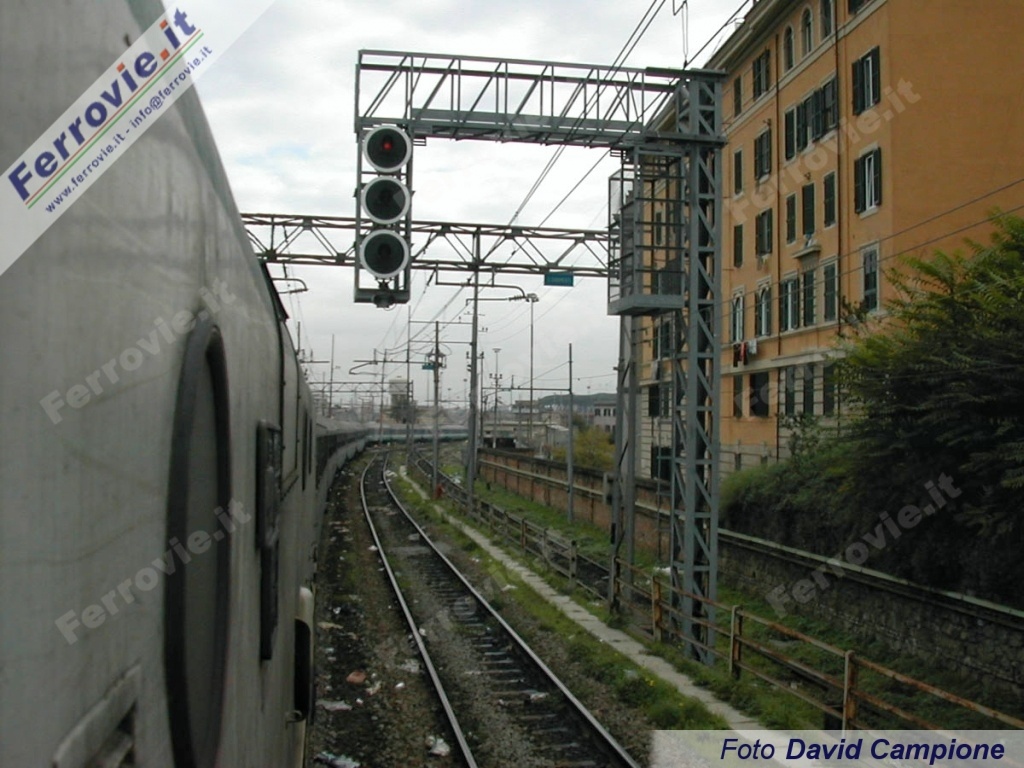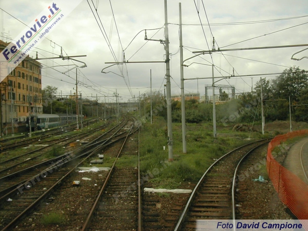 La macchina viene sganciata e adesso siamo di nuovo in testa, pronti per ripartire verso il deposito locomotive di San Lorenzo, dove terminerà questo servizio. Il segnale basso si dispone a via libera, mentre l'indicatore di direzione del segnale riporta il numero 4. Attraversiamo i binari della linea Roma Temini Roma Prenestina - Sulmona, oggi interrotti per consentire i lavori di realizzazione della penetrazione urbana dell'Alta Velocità, con i pantografi abbassati superando anche un breve tratto neutro, e pieghiamo con decisione verso destra costeggiando subito la rimessa Vallone. Rialzato il pantografo prendiamo spunto per superare la livelletta che da accesso al deposito, dove giungiamo subito dopo.