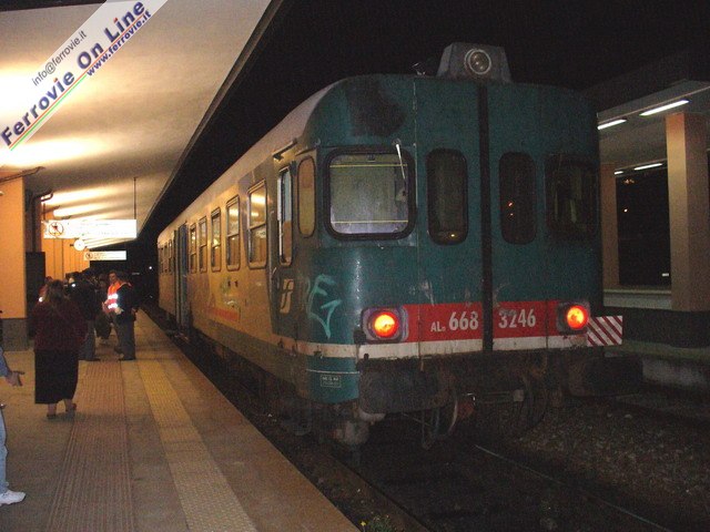 SOVERATO (Catanzaro) - Nella notte tra il 19 ed il 20 maggio 2006 si è svolta nei pressi della stazione di Soverato, sulla linea Jonica tra Reggio Calabria e Catanzaro Lido, una simulazione di deragliamento. La "cavia" è stata la ALn 668.3246, la quale è stata inviata dal DL di Catanzaro Lido.