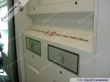 Il convoglio si presenta perfettamente pulito, con tutti cartelli di percorrenza al loro posto. Scattando le foto di rito, a terra ed a bordo, rimango stupito da una novità inaspettata: il "Sigillo Garanzia Igiene", applicato sulle porte di tutte le ritirate dall'IFT - Impianto Formazione Treno di Napoli, a garanzia dell'igiene del bagno... Ed in effetti le ritirate sono tutte perfettamente pulite, complete di acqua, carta, sapone e perfino deodorante applicato sulle pareti!