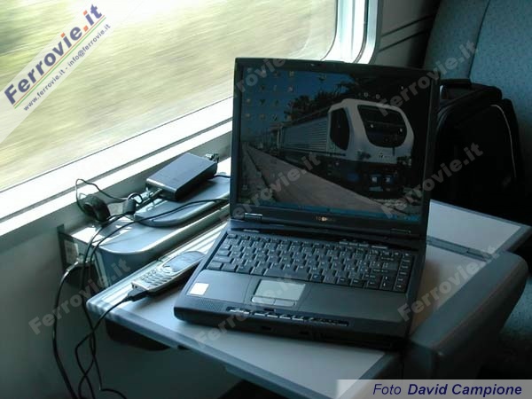 Prendo posto nella vettura numero 7 dove ho la prenotazione, ovvero in una eccellente Gran Confort, e subito metto alla prova la presa di corrente a 220 volt, disponibile in ciascun posto a sedere di prima classe: "apparecchio" il tavolino con il notebook ed inizia il viaggio. La presa elettrica è diventato un accessorio ormai fondamentale per chi si sposta in treno per percorrenze medio-lunghe, stupisce perciò che si sia scelto di non installarle in seconda classe.