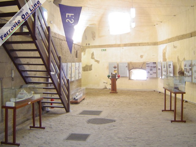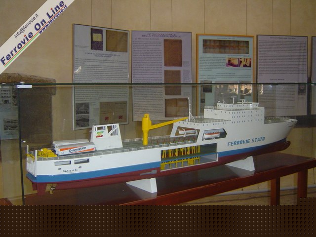 In una grande sala al secondo piano dell'esposizione è possibile ammirare alcuni pannelli che documentano il rapporto tra la ferrovia ed il porto di Civitavecchia e la storia del traghettamento di rotabili ferroviari tra il Continente e l'Isola, iniziata nel 1928 allorquando la nave "Messina", di norma impiegata sullo Stretto, compì in via sperimentale un viaggio, con partenza da Civitavecchia e arrivo a Terranova - Porto Pausania, carica di locomotive nuove destinate alla rete sarda.