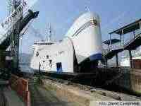 Quest'ultima manovra comporta l'impegno da parte della locomotiva elettrica (inattiva) del ponte mobile che assicura la connessione tra terraferma e nave traghetto facendo venir meno una delle prerogative (sebbene la meno importante) dei carri scudo che era quella di evitare che la locomotiva, con la sua massa elevata, mettesse a dura prova la struttura del ponte mobile e si inoltrasse nella stiva della nave.