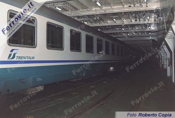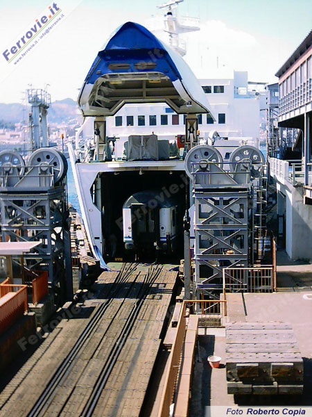 Una volta ricongiunte le due sezioni (in tutto 9 vetture), la locomotiva viene sganciata e il convoglio viene spinto sui binari centrali delle navi attualmente in servizio (tipo Scilla/Villa o tipo Iginia/Sibari/Rosalia). L'operazione di imbarco, che consta di due manovre di ingresso e regresso eseguite da una locomotiva D. 145 del deposito di Messina con relativi carri scudo, non supera i dieci minuti.