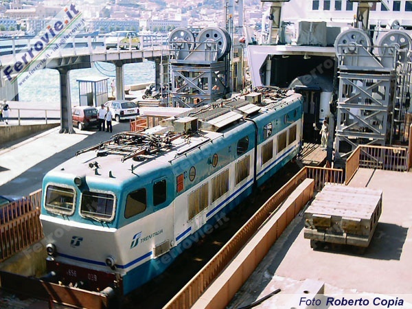All'arrivo a Messina Marittima le sezioni vengono sbarcate dal traghetto separatamente. Le manovre sono ancora una volta affidate a una coppia di D.145 del deposito di Messina con i propri carri scudo ai quali è stata già agganciata la locomotiva E. 656 titolare con il personale di macchina già al proprio posto.