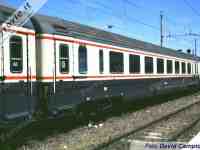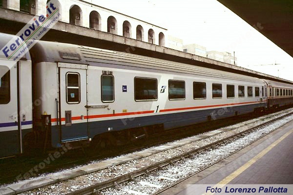 Le unità viaggianti in territorio nazionale, invece, identiche alle precedenti con la sola assenza del furgone generatore completamente adibito a bagagliaio, furono caratterizzate da una azzeccata cromia che prevedeva il grigio ardesia sul telaio, l'avorio antico sul resto della fiancata e una fascia di colore rosso 10 cm al di sopra e al di sotto dei finestrini. Grigio era anche l'imperiale, liscio nella prima fornitura come sopra scritto datata 1973 e cannellato nella seconda di metà anni '80, allorquando si procedette alla costruzione di altre unità per il servizio interno. Tale livrea, pochi anni dopo, fu estesa anche alle unità per servizi internazionali, nel frattempo modificate per essere utilizzate in servizio interno. Nella foto la 50 83 18-98 600-9 A sta lasciando Roma Termini in composizione ad un treno Intercity. (Foto David Campione, giugno 2001)