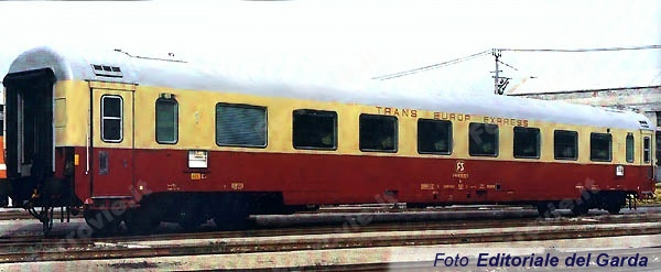 Le carrozze Gran Confort furono costruite tra il 1972 ed il 1973 nell'ottica di un utilizzo in composizione ai convogli TEE nazionali ed internazionali. Per offrire il massimo confort ai passeggeri furono con esse adottate soluzioni innovative e ancora oggi probabilmente ineguagliate, quali il pavimento flottante, i doppi vetri con tendine a "veneziana", l'armadietto con grucce dietro ad ogni poltrona nelle vetture a scompartimenti, l'aria condizionata e l'impianto di diffusione sonora. Le unità previste per i convogli internazionali erano sia a compartimenti che a salone unico e al loro fianco trovavano posto le vetture ristorante e i bagagliai - furgoni generatori, necessari per la produzione di corrente sotto le catenarie straniere. Per queste vetture, inserite nelle relazioni TEE, fu adottata la splendida livrea rosso e crema già vista in Italia sulle ALn 448/442/460 e all'estero sui rotabili operanti in regime TEE. Nella foto la 61 83 18-98 912 - 3 A posa poco dopo la consegna ufficiale. (Foto Editoriale del Garda, 1972 )