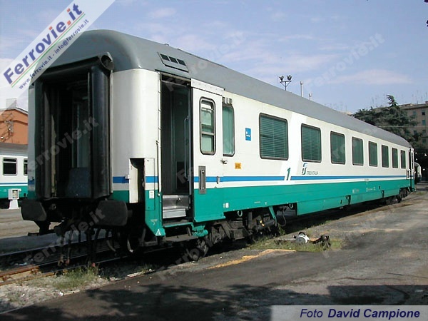 Naturalmente livrea simile è stata adottata anche per le unità con il tetto cannellato, come nel caso della 50 83 18-98 567-0 A in sosta a Roma Termini. (Foto David Campione, 10 giugno 2003)