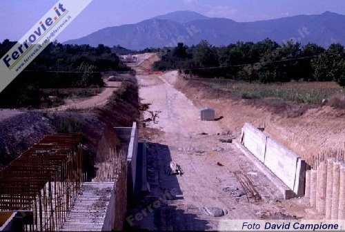 1. Tratto di linea in trincea, fotografato dalla sommità della galleria artificiale Sarcioni, nei pressi di Caianello (CE) (Foto David Campione, 02 settembre 1997)