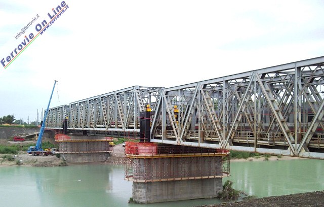 LATISANA (Udine) - Il ponte ferroviario sul fiume Tagliamento prende quota. Con l'innalzamento di 110 centimetri delle travate che ospitano il binario pari in direzione Venezia, si è conclusa la prima fase dei complessi lavori che stanno interessando il ponte in ferro sul fiume Tagliamento che separa Latisana e San Michele al Tagliamento, ovvero Friuli Venezia Giulia e Veneto.