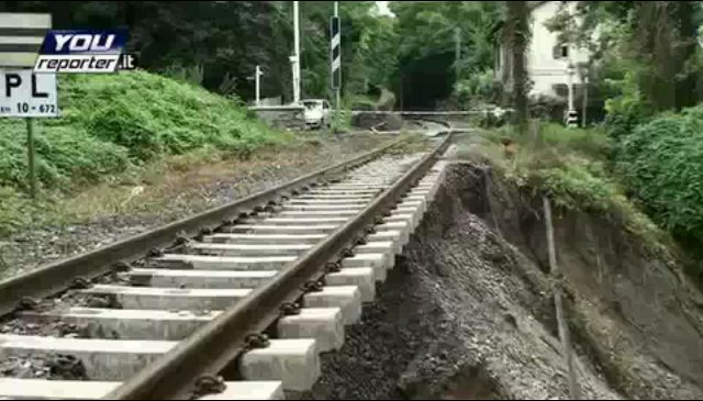 LECCO - A causa del forte maltempo che si è abbattuto in questi giorni sulla Lombardia, una frana ha interrotto la linea ferroviaria a binario unico Monza - Molteno - Lecco poco a nord della stazione di Oggiono, sulle rive del lago di Annone. A pochi metri dal passaggio a livello di via Bagnolo (Pkm 10+672) il terreno sottostante i binari ha ceduto, lasciando binari e traversine sospesi nel vuoto. Immediata la sospensione della circolazione fra Molteno e Lecco.