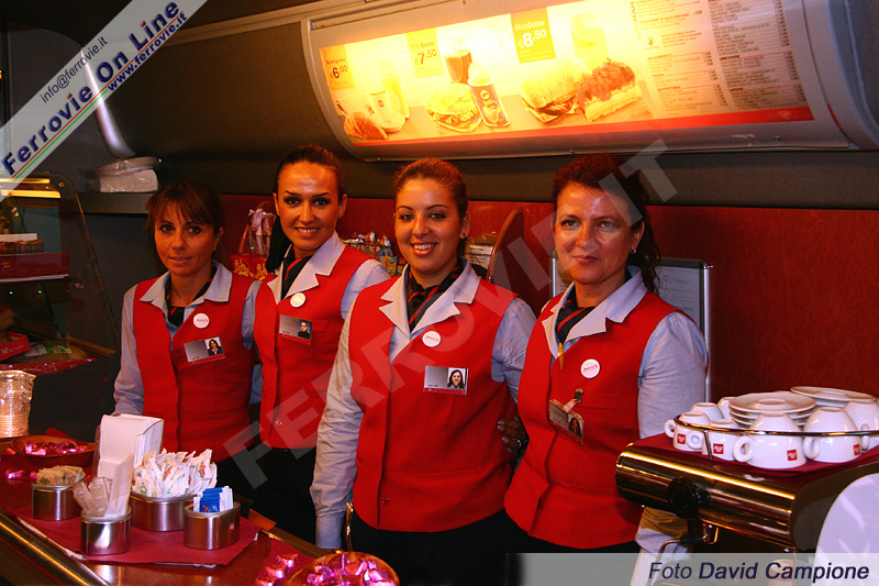 Tornando a bordo dei treni, Menù Rosa nel ristorante dei treni AV con consigli per un'alimentazione sana, cioccolatino Caffarel rigorosamente rosa offerto durante il welcome drink in prima classe o al vagone ristorante, degustazioni del Gambero Rosso di quattro case produttrici di vino con sommelier donne (giorni 26,27,28 e 29 ottobre), degustazioni di caffe Illy il 18, 19 e 20 ottobre.