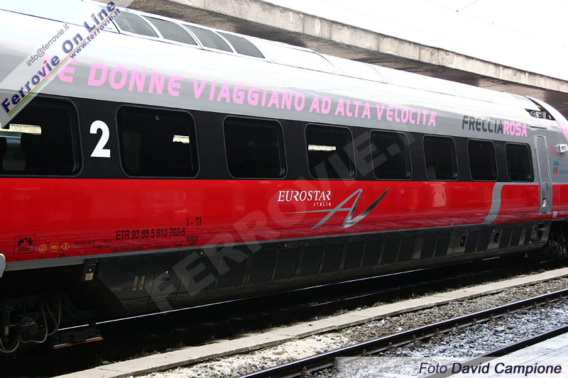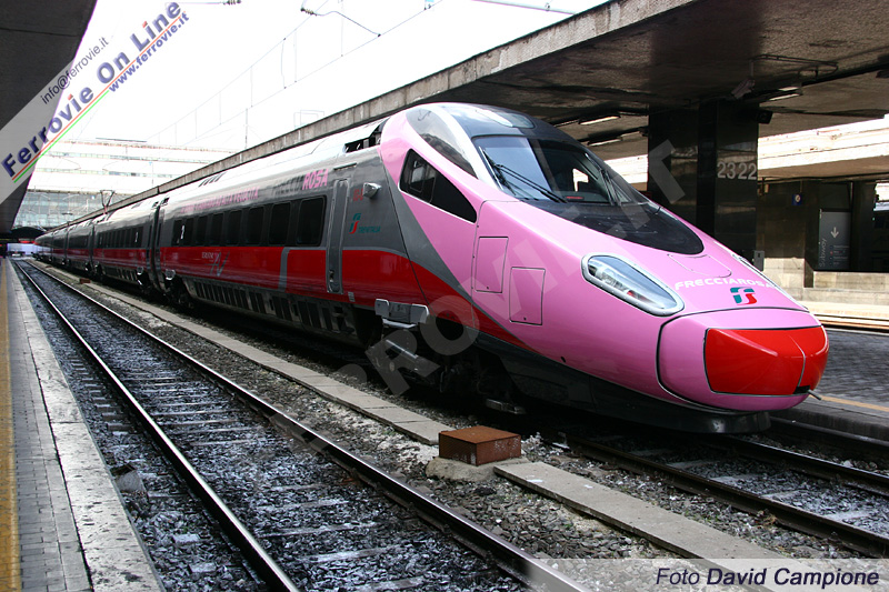 Su entrambi i treni è stata applicata la scritta "Le donne viaggiano ad alta velocità" accompagnata dal marchio "Freccia Rosa"; il frontale è completamente rosa, salvaguardando la fascia rossa antinfortunistica, con un motivo che si estende sulle fiancate delle cabine.