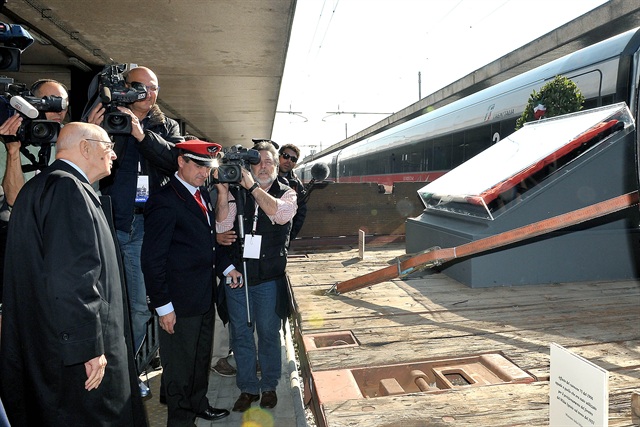 Napolitano ha scoperto una targa di marmo rievocativa dell'evento ed è poi salito sul treno per visitare la mostra.
